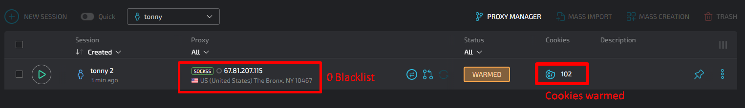 Made the anti-detect profile, checked the proxy, it is in 0 blacklists. Warmed it up.