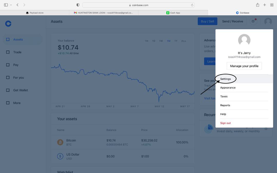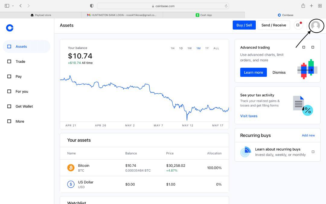 As soon as you log into coinbase, you will see these 3 lines in your personal account, just click on them.