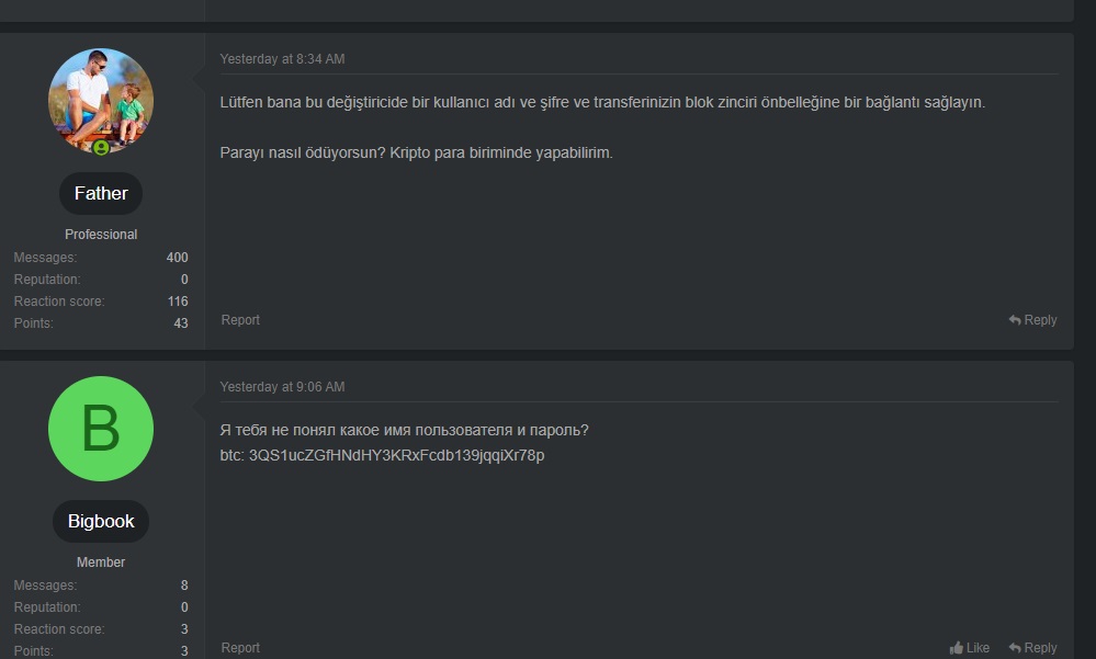 But this topic allowed us to reveal another nickname of our favorite fraudster from Turkey, who sells CC and dumps and deceives everyone under the nickname @dunkelh3it